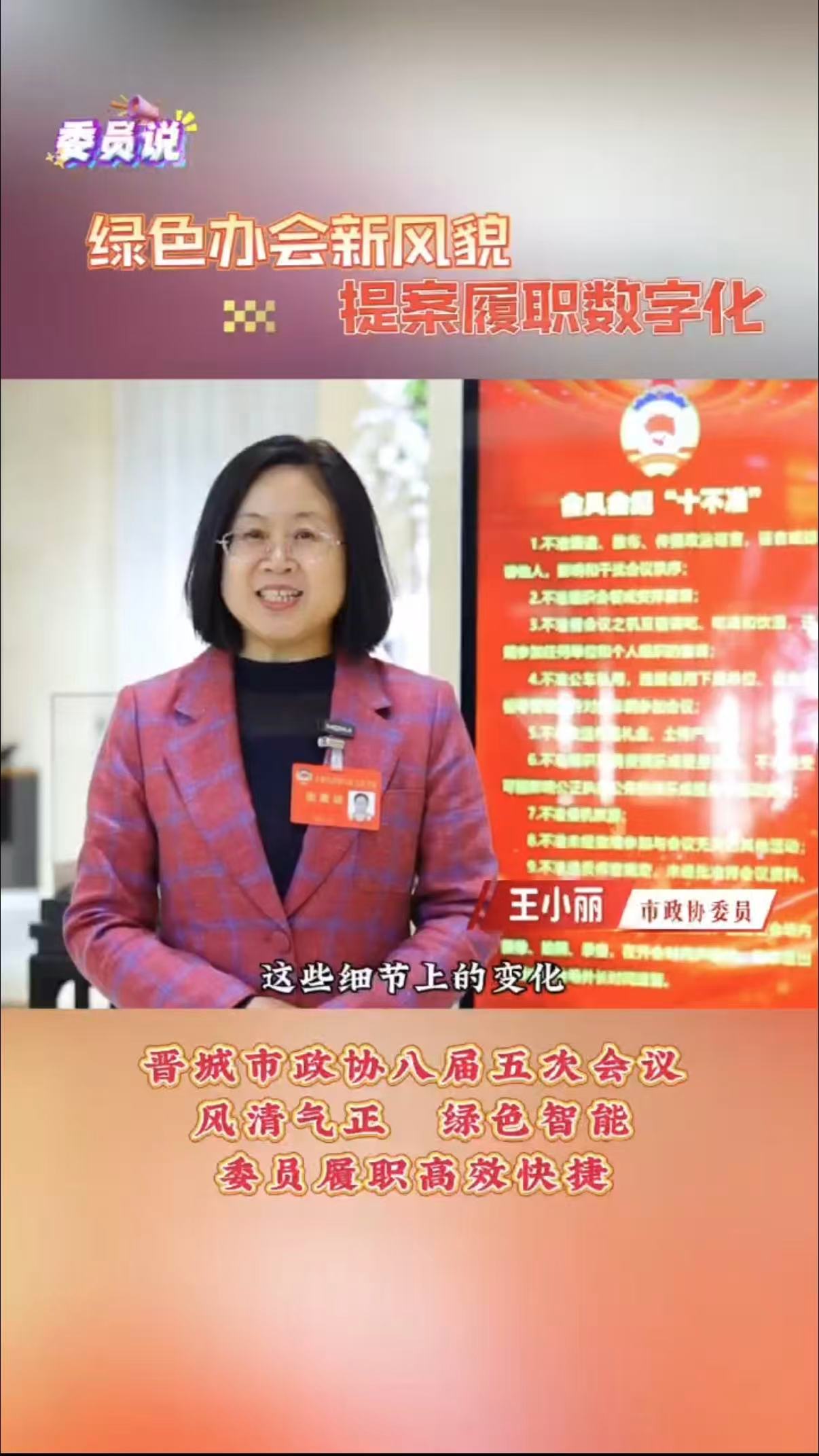 市政协委员王小丽:绿色办会新风貌 提案履职数字化